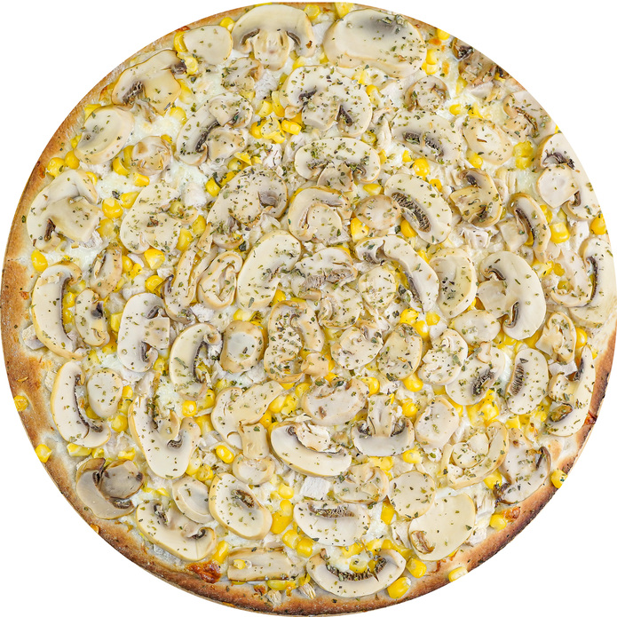 Crema, Queso Mozarella, Orégano, Pollo, Champiñón, Choclo